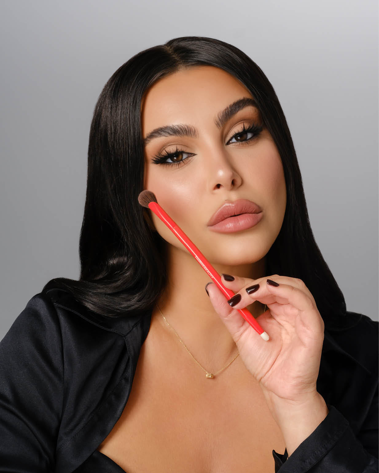 Use the slim fan to contour and refine smaller features. Use the pencil tip to place targeted highlight or add precise definition.